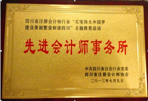 热烈祝贺我所荣获四川省注册会计师行业“实现伟大中国梦 建设美丽繁荣和谐四川”主题教育活动先进会计师事务所光荣称号。
