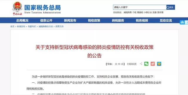 为进一步做好新型冠状病毒感染的肺炎疫情防控工作,支持相关企业发展,现就有关税收政策公告如下: