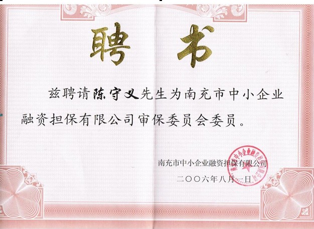 本所所长陈守义受聘为南充中小企业融资担保公司审保委员会委员