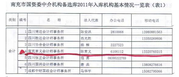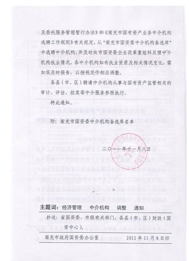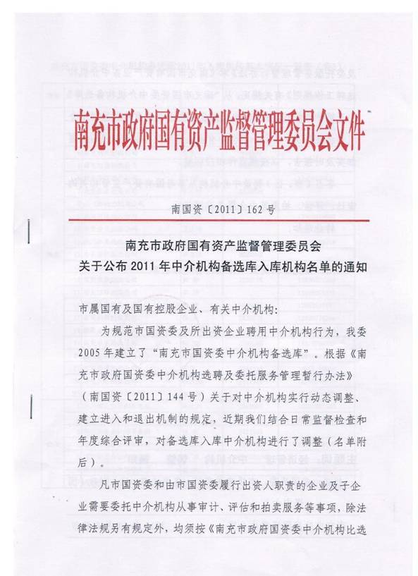 我所入围南充市国资委2011年中介机构备选库